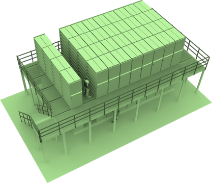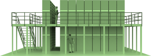 Para ampliar ao máximo a ocupação do espaço em locais de instalação de elevado pé direito, os sistema de 2 pavimentos podem até quintuplicar a capacidade em volume arquivado