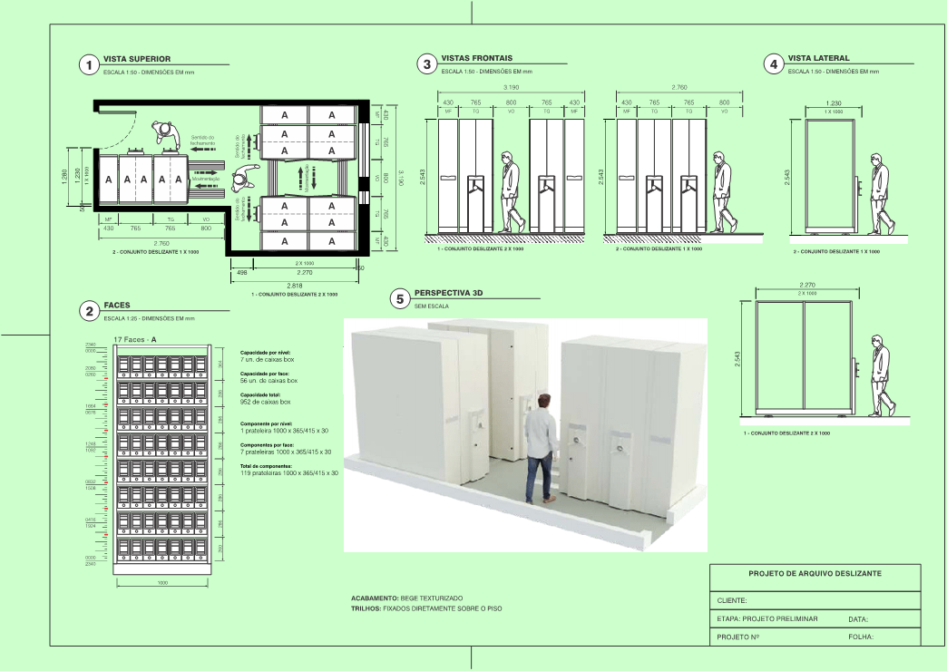 - Atuamos de acordo com as Normas Técnicas ABNT aplicáveis a arquivos deslizantes a partir dos Procedimentos de Certificação de Conformidade PE289 (Processo de Preparação e Aplicação de Pintura em Superfícies Metálicas) e PE-388 (Fabricação de Arquivos Deslizantes).