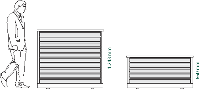 Versões com 10 ou 05 gavetas de 100 mm de altura ( empilháveis até 3 módulos.