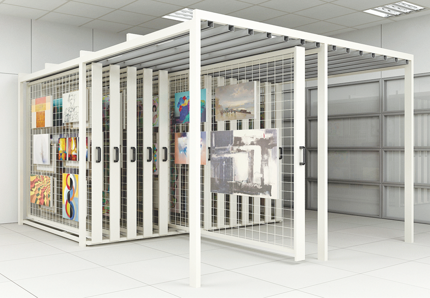 Sistemas traineis para acervos de quadros e obras de arte em geral