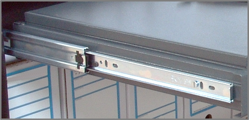 Trilhos telescópicos de gavetas de pastas, ajustes de pressão.